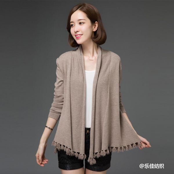 6、中长款披肩针织开衫 看似简单纯色经典的针织衫,实则很不简单哦~在下摆流苏细节方面,非常讨人喜欢,简约灵动的流苏,穿着起来非常显优雅气质。而且,还融入了一些女孩的甜美可爱感,瞬间就觉得层次感丰富呢。这么显气质的一款开衫针织,你值得拥有。